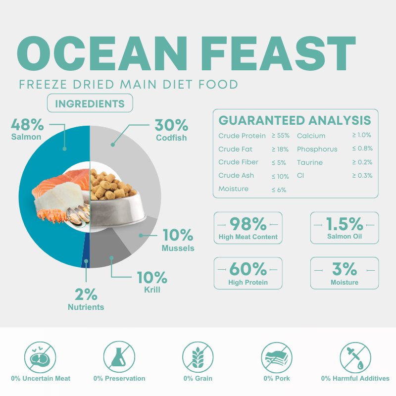 ✅ 5x Nutritious.(150g Ocean Feast is made from 750g fresh seafood)